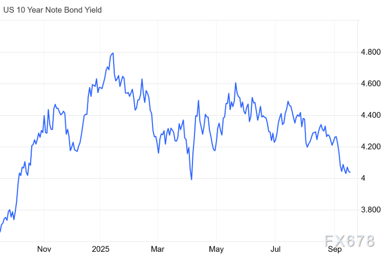 在此情景几成定局之际,其影响亦蔓延至10年期国债——收益率持续下行逼近4.0%关口,创下自4月以来新低。截至目前,这一趋势未见逆转迹象:市场对美联储降息的预期几乎直接传导至收益率曲线,削弱了美债相对于其他资产的吸引力。